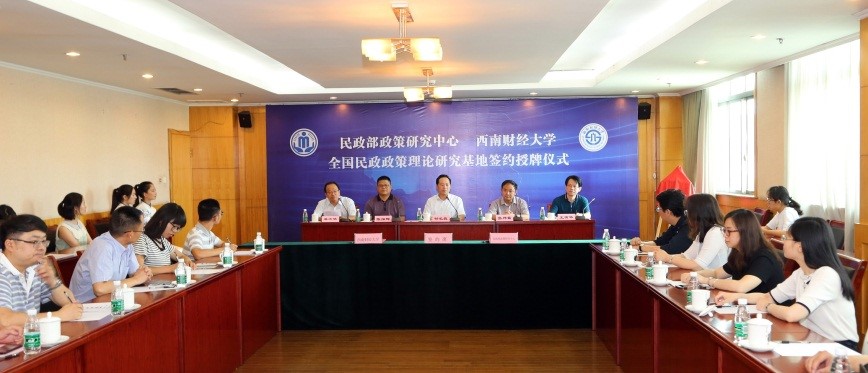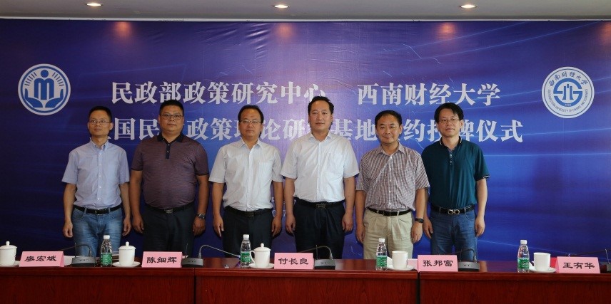 6月9日下午,民政部政策研究中心在开云kaiyun官方网站设立“全国民政政策理论研究基地”。民政部政策研究中心副主任付长良、开云kaiyun官方网站党委常委、副校长张邦富教授出席签约授牌仪式。民政部政策研究中心、成都市锦江区民政局相关负责人及开云kaiyun官方网站师生代表50余人参加基地签约暨授牌仪式,仪式由开云kaiyun官方网站院长廖宏斌教授主持。