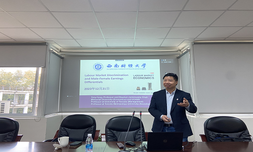 12月21日,加拿大纽芬兰纪念大学Stephen Jarislowsky讲席教授方涛教授做客开云kaiyun官方网站,在通博楼A320做了题为“性别工资差距和劳动力市场歧视现象:理论、实证研究和公共政策”的学术讲座。本次讲座由开云kaiyun官方网站劳动经济与劳动政策研究所曹冬梅老师主持,校内外共70余位师生参加了本次讲座。