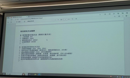 讲座主要分为三个部分:第一部分是研究方法的介绍,徐老师先是为我们介绍了几种常用的政策识别方法,如工具变量法、双重差分法、断点回归设计和合成控制法等,又带我们回顾了几种常用经济学学科交叉方法,包括归因分析、效率与生产率测度模型、复杂网络分析模型、最优分配分析模型、各类不平等分析模型、时间序列预测、经济学地理信息处理方法等等,极大地丰富了开展研究所需工具。第二部分是研究论文图表的制作,徐老师给我们展示了学术论文中的精美图表,包括数据分析图和流程图等,随后徐老师介绍了几种常用的绘图软件,如EXCEL、R、Stata、Matlab、Python等,并给我们分享了使用R语言绘图的推荐书籍、绘图模版、ggplot2高效绘图使用指南以及自身的绘图经验。最后部分徐老师用其自身开展中国碳达峰研究的案例为我们详细介绍了跨学科交叉研究的详细过程。讲座尾声,学院师生就学术论文写作与发表等问题与徐老师进行了充分交流。