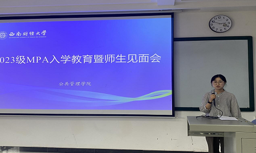 2022级MPA研究生高思涵、2023级MPA非全日制研究生唐程、2023级MPA全日制研究生付晓颍作了新生代表发言。学院社会保障系系主任穆滢潭、能源经济与环境政策研究所教授李丁、公共经济制度与政策研究所所长何欢、教育管理与政策研究所所长陈涛分别就本学科的师资队伍、研究方向、学科建设等问题进行了介绍。