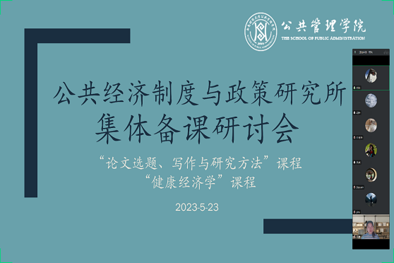 5月23日下午,开云公共经济制度与政策研究所举行了线上集体备课与研讨活动,集体备课的课程为任杨玲老师主讲的硕士研究生课程《论文选题、写作与研究方法》和陈泽媛老师主讲的硕士研究生课程《健康经济学》。系所教师胡务、王霞、黄硕、王一如、刘翔实等参加讨论,所长何欢主持会议。
