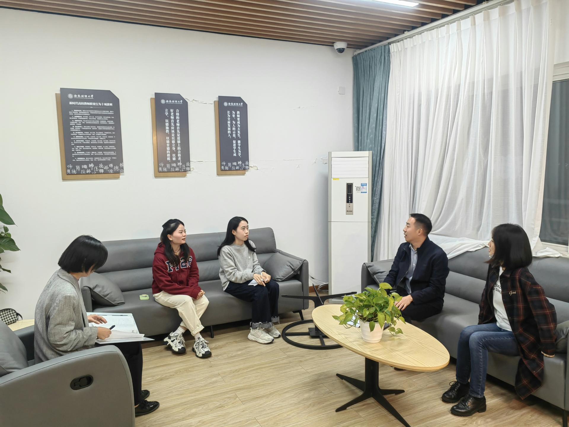 在课后的教学交流研讨环节,各位老师均表示观摩本次课堂教学受到启发。刘黄娟老师表示,陈老师在引导学生进行深度思考时使用了许多适恰的衔接语,促使整个课堂形成了一个思维碰撞的“能量场”。何芳老师围绕“本科教育与研究生教育的不同”,与陈朝兵老师开展相关讨论,具体涉及教材内容安排与课堂内容进度二者关系如何合理把握,以及理论与概念类知识点如何生动讲授等问题。陈老师结合自身教学经历表示,在研究生教学中,可以将自己的科研思考与课堂教学有机融合,讲出有别于其他老师或者说体现自己教学独特性的内容。并且在教学方式上,适当使用板书、构建知识内容“地图”,对于学生接收和理解知识是有益的。