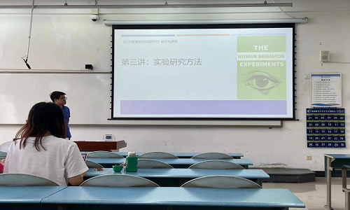 秦增强老师讲授的课程内容主要为“实验研究方法”。本次课程,秦增强老师首先对以往知识点进行了回顾与总结,其次由小组同学带领大家进行文献精读以及ppt展示,秦增强老师对同学们的课堂展示进行点评和进一步总结拓展。随后,秦增强老师先后引出了理论、假设、自变量等概念,并引用案例激发学生对现实情景的思考,加强学生的理论认识与理论运用。秦增强老师的教学风格具有活用案例的特色,师生互动亲切自然,课堂气氛轻松活跃。