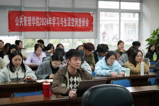 在前期的筹备阶段,学院通过问卷调查等多种形式,广泛征集了105名同学们的意见和建议,内容涵盖了学习、生活、竞赛、社会实践及百年校庆等与同学息息相关的多个领域。座谈会上,老师们对前期问卷征集的各类问题进行了详尽而耐心的解答。陈朝兵主要从个人规划、科研参与、课程学习等方面给同学们提供了丰富的实践建议,他鼓励同学们多参与各类实践在经历中学习历练,努力成长为综合能力突出、思维多元的公管青年。