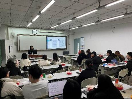 王淳汇报的论文选题为《人工智能与女性劳动力市场表现》。该论文探讨了在以人工智能为代表的技术进步背景下,女性劳动力在就业市场中的收入和福利如何变化。主讲人从研究背景、文献综述、理论框架和实证结果等方面介绍了论文选题,针对研究中遇到的难点问题与现场老师和同学们进行了深入交流。