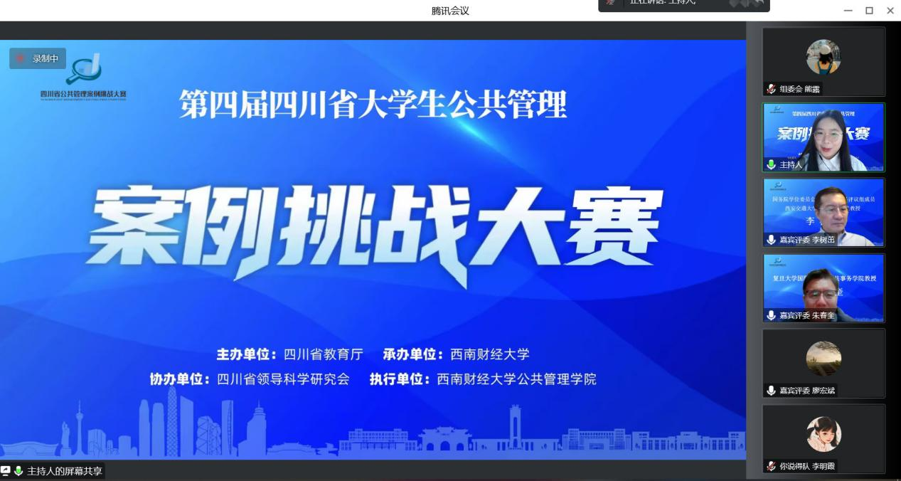 12月11日,第四届四川省公共管理案例挑战大赛决赛顺利落下帷幕。大赛由四川省教育厅主办、四川省领导科学研究会协办、西南财经大学承办,吸引了来自中山大学、厦门大学、四川大学、中央财经大学大学、香港理工大学、西南财经大学等全国各地42所高校91支队伍参赛,经过激烈的角逐比拼,共有15支队伍脱颖而出,在决赛中展开最后的较量。国务院学位委员会公共管理学科评议组成员、西安交通大学开云kaiyun官方网站李树茁教授,复旦大学国际关系与公共事务学院朱春奎教授,四川省领导科学研究会副会长、开云kaiyun官方网站院长廖宏斌教授出席本次大赛。