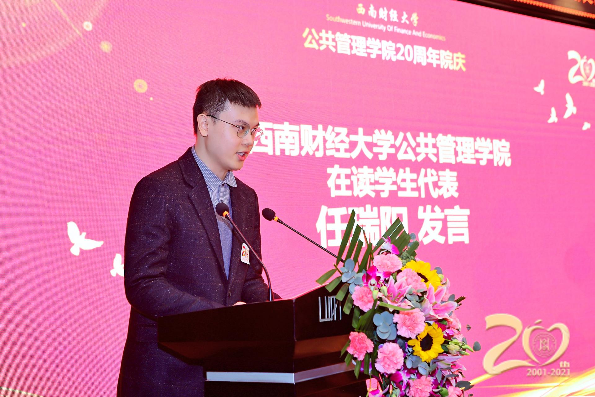 在校生代表任瑞阳在发言中表示,将铭记学院的教诲,毕业后到祖国、到人民最需要的地方去,挥洒汗水,建功立业,实现个人理想与人生理想。衷心祝福学院在迈向中华民族伟大复兴的新征程上,再谱新篇章,再创新辉煌。