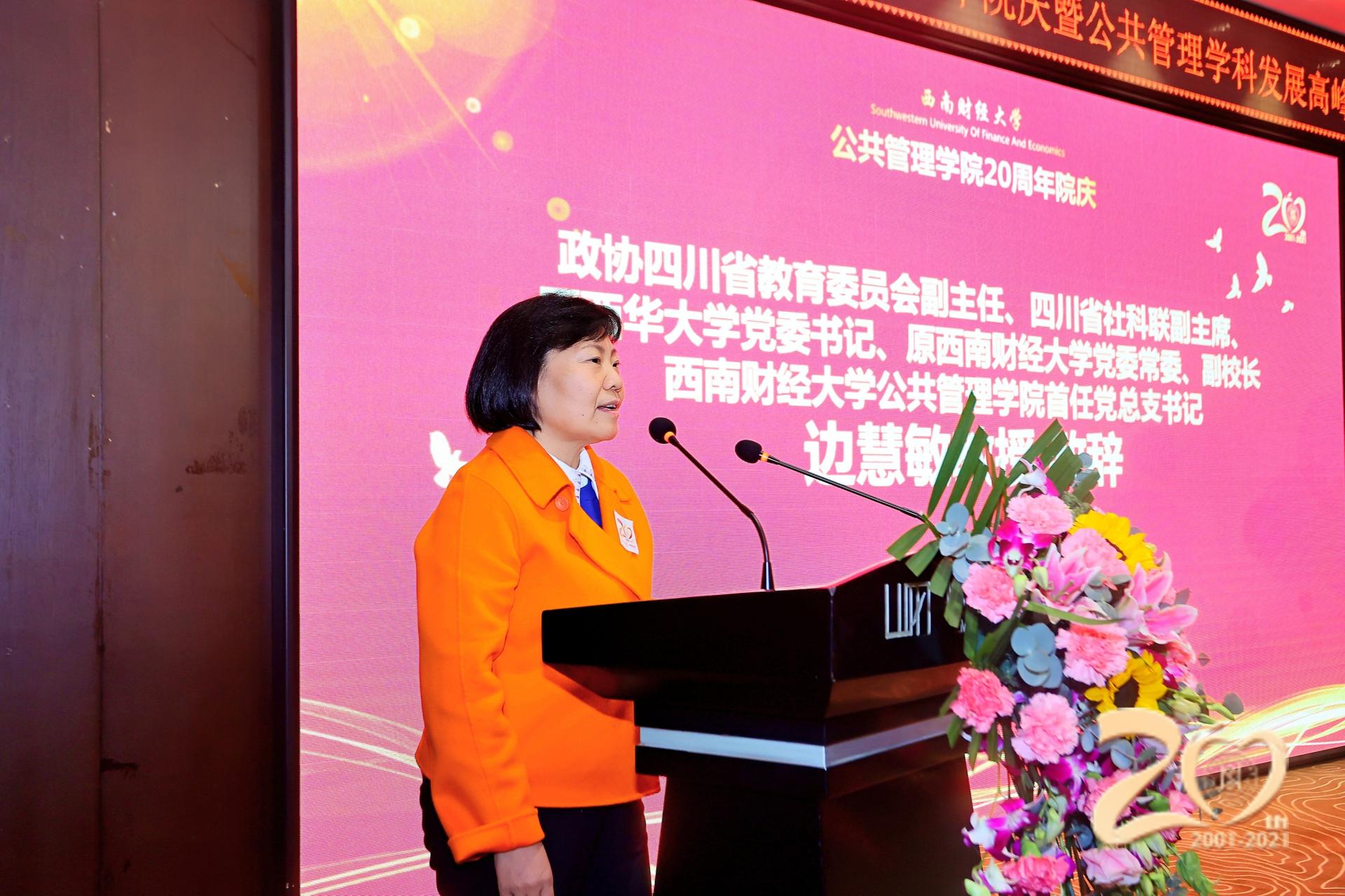 边慧敏教授作为西财公管首任党总支书记在致辞中指出,老一辈教师滋养了学院,培养了一批又一批优秀学子,西财公管已经建设成为服务地方发展和国家重大需求的重要人才培养基地。在新的历史条件下,公管人最有志气,也最有底气和能力去解读中国实践,构建中国理论,讲好中国故事。她希望,财大公管继续保持改革奋进,实现高质量发展,贡献高质量理论,培养更多高水平人才。