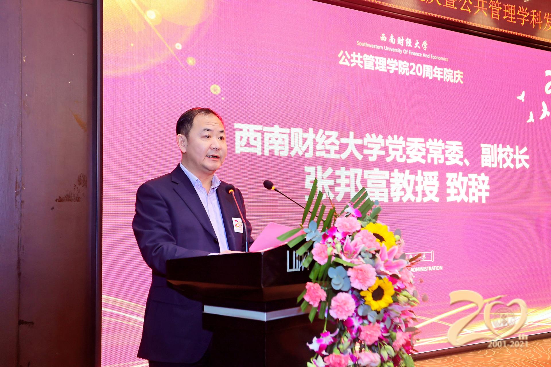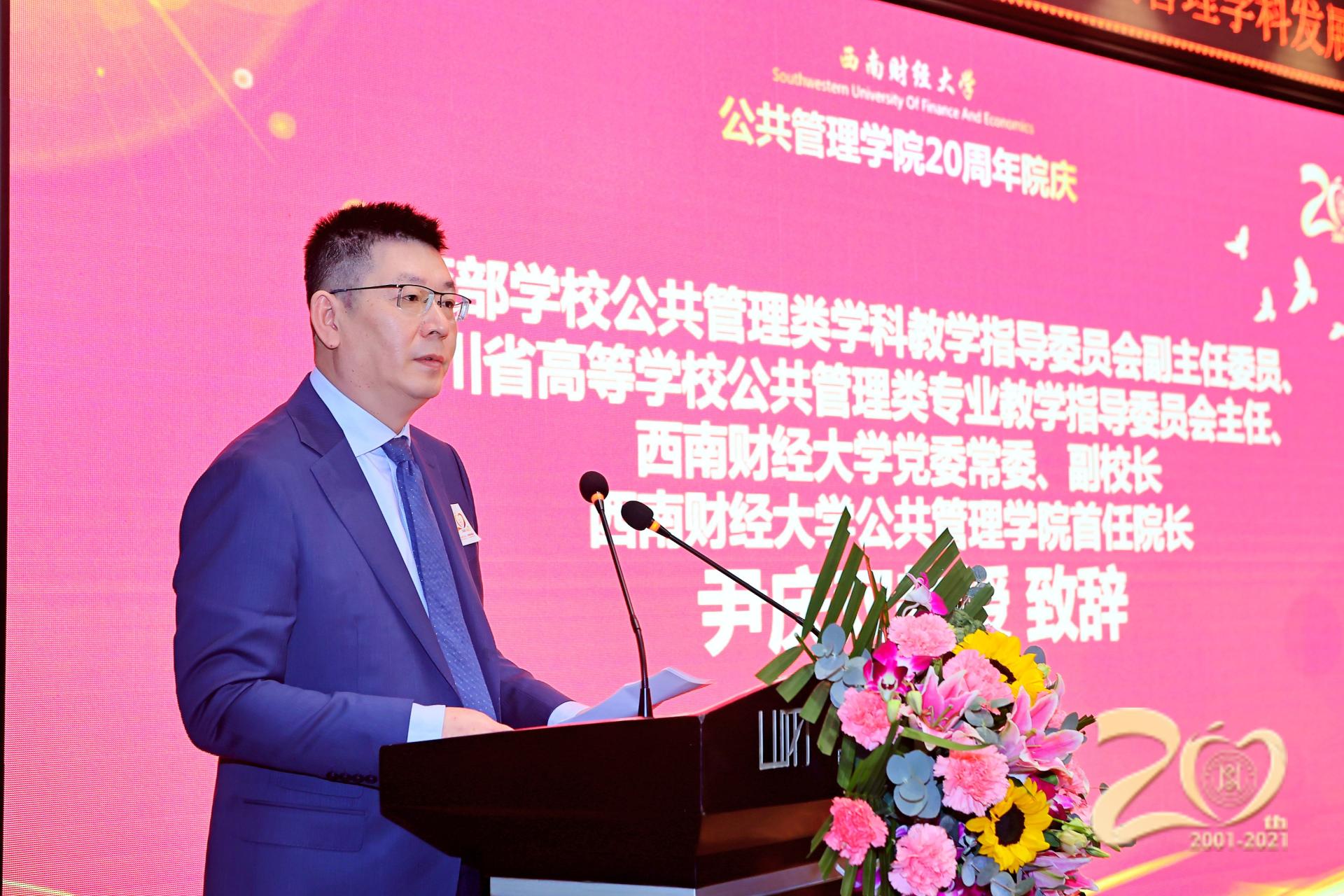 尹庆双教授作为西财公管学院首任院长在致辞中表示,对学院师资队伍不断壮大、学科力量不断增强感到欣慰。他希望学院走继续坚持学科特色发展的道路,在高质量人才培养和科学研究中有更大的作为。在新的历史节点,要认真总结过去20年的经验和教训,积极承担起政治责任、学术使命和时代责任,积极探索财经特色引领的公共管理学科发展道路,致力实现学科发展的新突破。