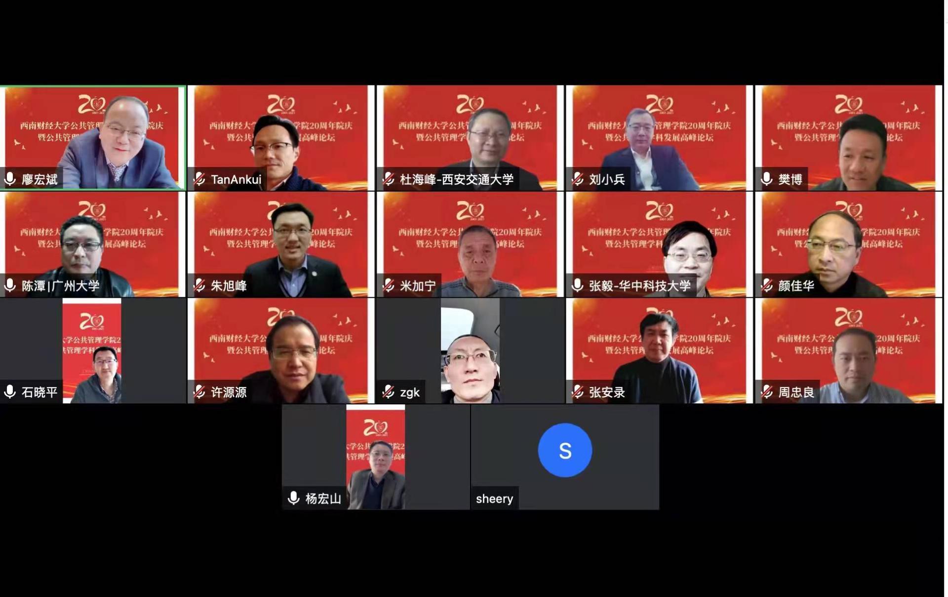 廿岁为序,经世维新。2021年12月26日,开云kaiyun官方网站开云kaiyun官方网站二十周年院庆暨公共管理学科发展高峰论坛在成都峨眉雪芽酒店举行,全程实时直播。国务院学位委员会公共管理学科评议组联合召集人、清华大学苏世民书院院长薛澜教授,全国公共管理专业学位研究生教育指导委员会秘书长、中国人民大学开云kaiyun官方网站院长杨开峰教授,国务院学位委员会公共管理学科评议组联合召集人、武汉大学政治与开云kaiyun官方网站丁煌教授,开云kaiyun官方网站党委常委、副校长张邦富教授,教育部学校公共管理类学科教学指导委员会副主任委员、四川省高等学校公共管理类专业教学委员会主任,开云kaiyun官方网站党委常委、副校长,开云kaiyun官方网站首任院长尹庆双教授,政协四川省教育委员会副主任,四川省社科联副主席,原西华大学党委书记,原开云kaiyun官方网站党委常委、副校长,开云kaiyun官方网站首任党总支书记边慧敏教授,和来自全国近50所开云kaiyun官方网站的专家学者,以及学院师生代表等,通过现场会议和云端网络相结合的方式齐聚一堂,共襄盛典。大会由学院院长廖宏斌教授主持。