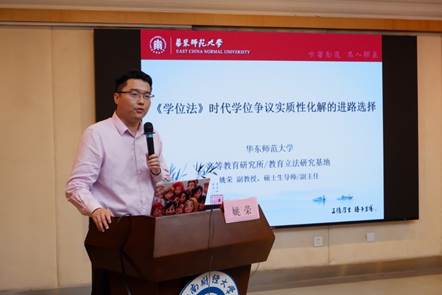 华东师范大学高等教育研究所、教育立法研究基地副主任,《重庆高教研究》青年学术委员会副主任委员姚荣副教授,以“《学位法》时代学位争议实质性化解的进路选择”为题进行了发言。他指出,《学位法》的颁布标志着我国学位治理进入新阶段,不仅提升了学位争议解决的法律依据和权威性,还着重于构建多元纠纷化解机制,推动学位正义的实现。但当前在实施过程中仍面临诸多挑战,如制度完善、效率提升及权益保护等。他强调,应从规范与功能统一的角度,准确解释和适用学位法,通过强化学术复核和学位复核制度,有效解决学位争议,确保学位法的实效性。