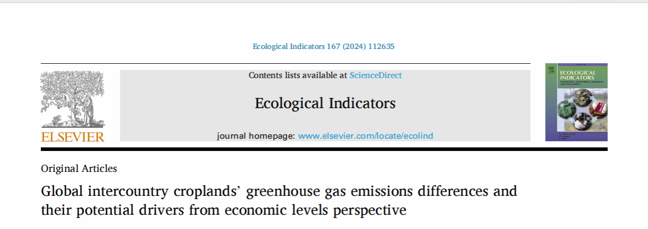 近期,在能源经济与环境政策研究所高明导师的指导下,23级劳动与社会保障专业本科生刘夏怡参与的科研成果《Global intercountry croplands’ greenhouse gas emissions differences and their potential drivers from economic levels perspective》发表于《Ecological Indicators》。该期刊重点关注环境科学及生态学领域,在中科院SCI分区中被列为二区Top,影响因子为6.9。