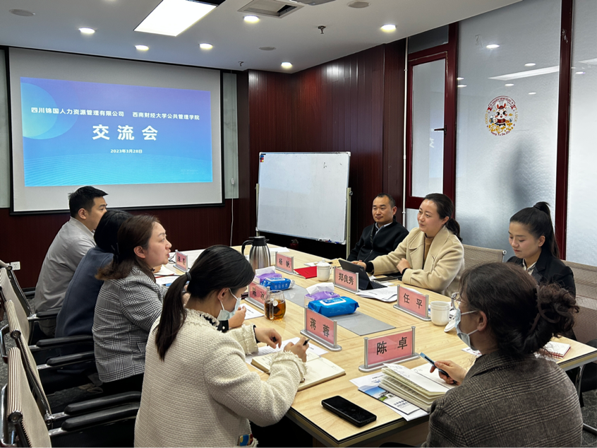 3月28日,开云kaiyun官方网站党委书记郑良秀带队,副书记杨帆、研究生辅导员任平一行赴四川锦国人力资源管理有限公司走访调研,公司董事长陈冰、常务副总经理曾田甜等相关负责人接待并参加座谈。