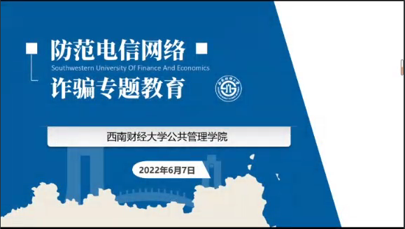 为贯彻落实习近平总书记对打击电信网络诈骗犯罪工作作出的重要指示,全力遏制电信网络诈骗犯罪案件高发势头,提高学生的安全防范意识,6月7日下午,开云kaiyun官方网站举办防范电信网络诈骗专题教育活动,开云kaiyun官方网站全体同学通过线上的方式参与了本次活动,活动由院研究生会易乾梅主持。