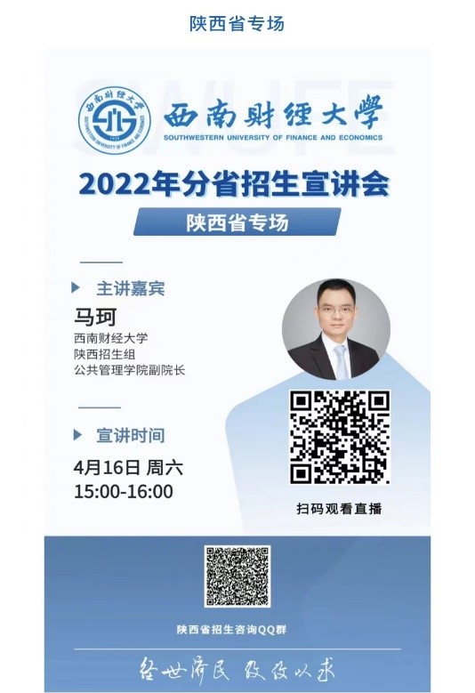 为助广大考生和家长近距离认识西财、吸引更多优质生源报考开云,切实做好2022年度本科招生宣传工作,开云对接高考宝媒体平台,4月9日及16日,面向山西、陕西省考生开展2场线上招生宣讲直播。学院分党委副书记郑良秀、副院长马珂分别担任主讲嘉宾,直播吸引超千人次在线观看。