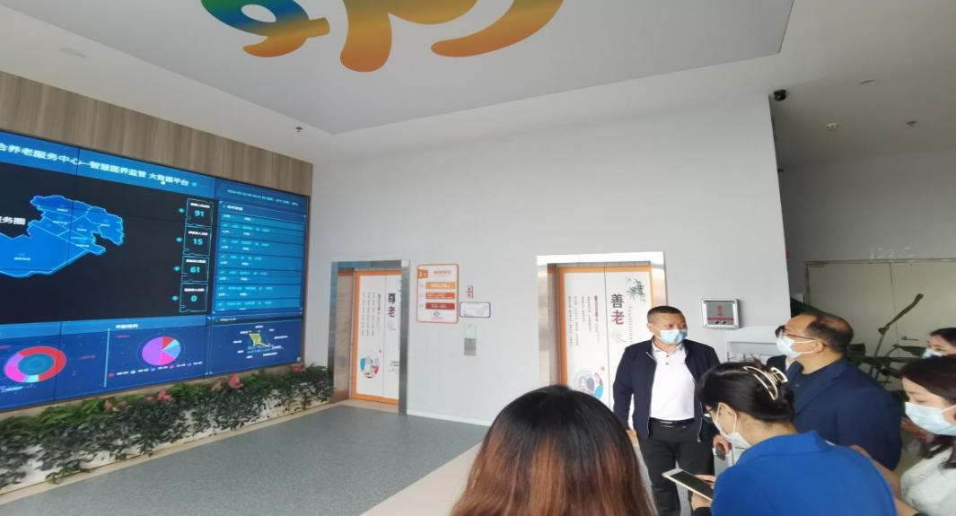 首先,高研组前往青白江区大同养护院了解社区医养结合与公共卫生信息化建设以及数字医养行业的就业与用人情况。大同养护院中心唐斌院长对中心的基本情况、运作方式及智慧医养监管大数据平台作了详细介绍。他指出养护院搭建的智慧医养大数据平台通过实时监测、异常情况预警,有效提升了养护院的服务质量与服务温度,但同时运行三个系统之间需要打破系统分割、制度分割,促进互联互通,才能实现医养结合一体化。随着养老与医疗的一体化推进,基层社区对从事医院管理的行业人才也提出了数据分析、处理和智慧医养的新需求。