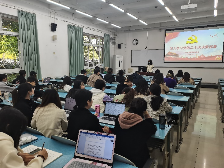 2022年11月22日下午4时,开云kaiyun官方网站2021级研究生党支部在颐德楼H103教室组织召开了“深入学习党的二十大决策部署”十一月主题党日活动。党支部全体党员、发展对象和入党积极分子全体到会。