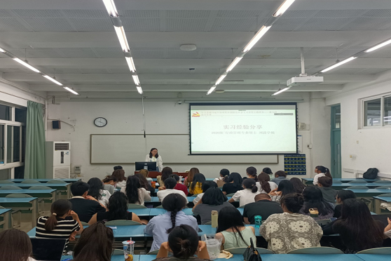 在实习经验分享环节,研三年级的刘潇学姐以自己的实习经历为例开展了细致全面的经验分享,提出要从实习选择、信息来源、简历制作、面试技巧四个方面入手,练就过硬本领,提升竞争优势。