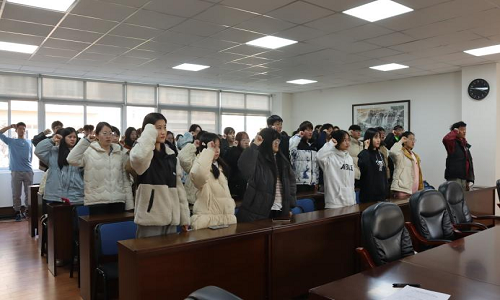 在会议即将结束之际,全体参会成员在团支部书记刘秋池的引领下,共同重温入团誓词。他们肃然起立,庄重地举起了右手,铿锵有力地表达了作为共青团员的责任与担当,彰显了为共产主义事业不懈奋斗的决心。这一庄严的仪式不仅是对每位团员职责的明确,更是对全体共青团员坚定理想信念的强大激励。